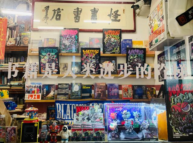 我给怪书书店的选书方向定了8个词:神秘、悬疑、传奇、漫画、幻想、科学、新知、热点。在橱窗上贴的文案是八十年代书店常见的名言“书籍是人类进步的阶梯”。最神奇的是,我的一个朋友圈的朋友,全球诺贝尔得奖者创新中心秘书长朱乙先生,还专门跑过来看我的书店,跟我说也许可以开一个诺贝尔奖主题的怪书书店,因为科学的图书也需要以更有趣的角度来销售,这确实给了我很大的启发……虽然这个想法还没有机会落地。