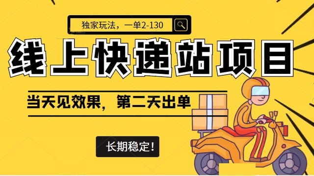 线上快递站项目独家玩法,一单2-130,当天见效,长期稳定项目(原价998元)